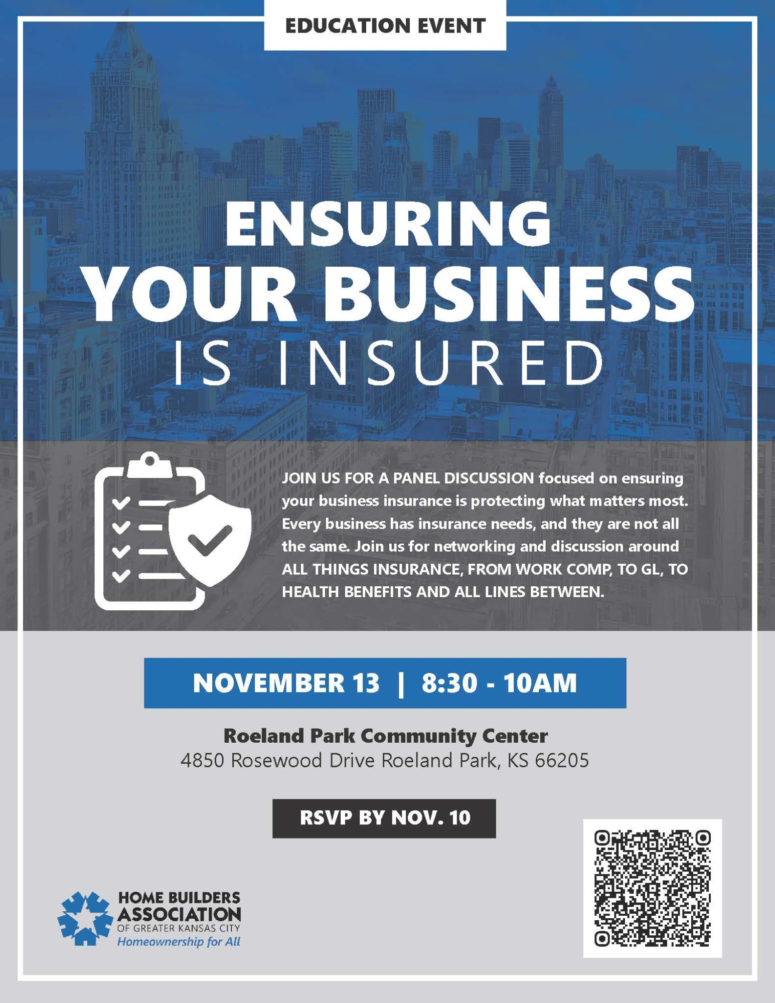 The KCHBA Membership Committee is hosting a panel discussion focused on ensuring your business insurance is protecting what matters most. Every business has insurance needs, and they are not all the same. Join us for networking and discussion around all things insurance, from Work Comp, to GL, to Health Benefits, and all lines between.
